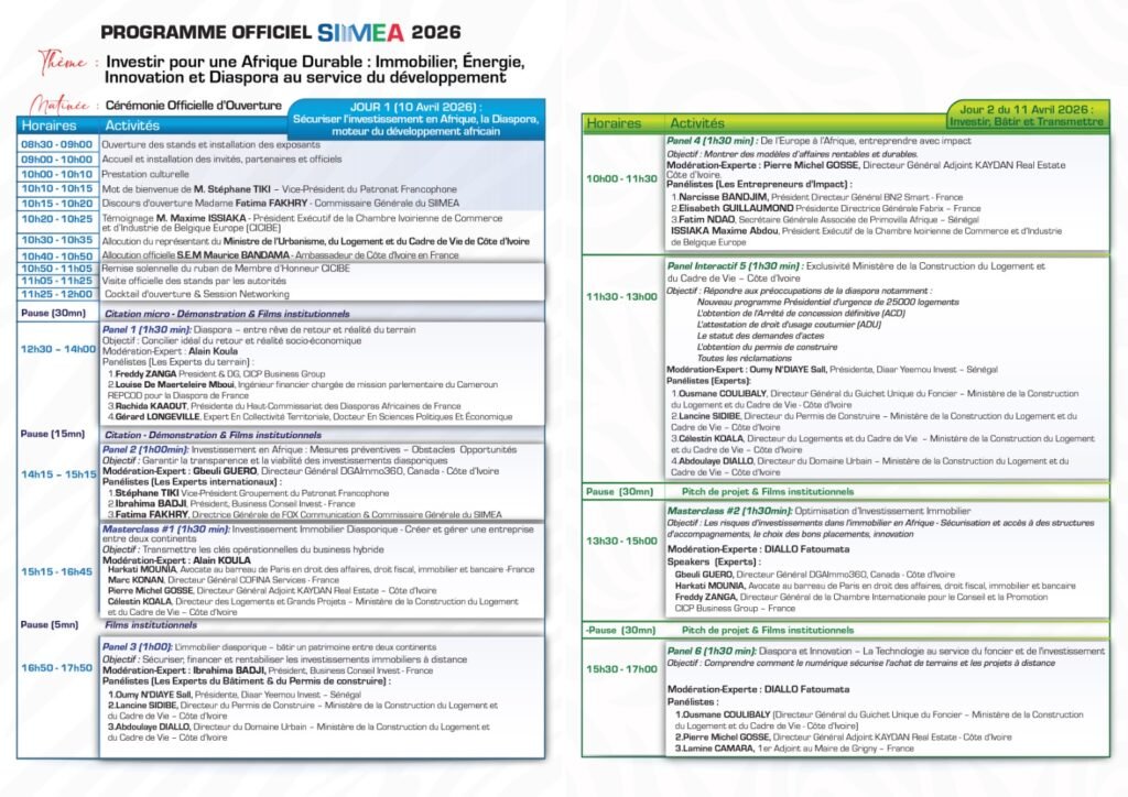 Revivez les conférences, découvertes immobilières et innovations énergétiques du Salon de l’Investissement, de l’Immobilier et des Énergies pour l’Afrique.